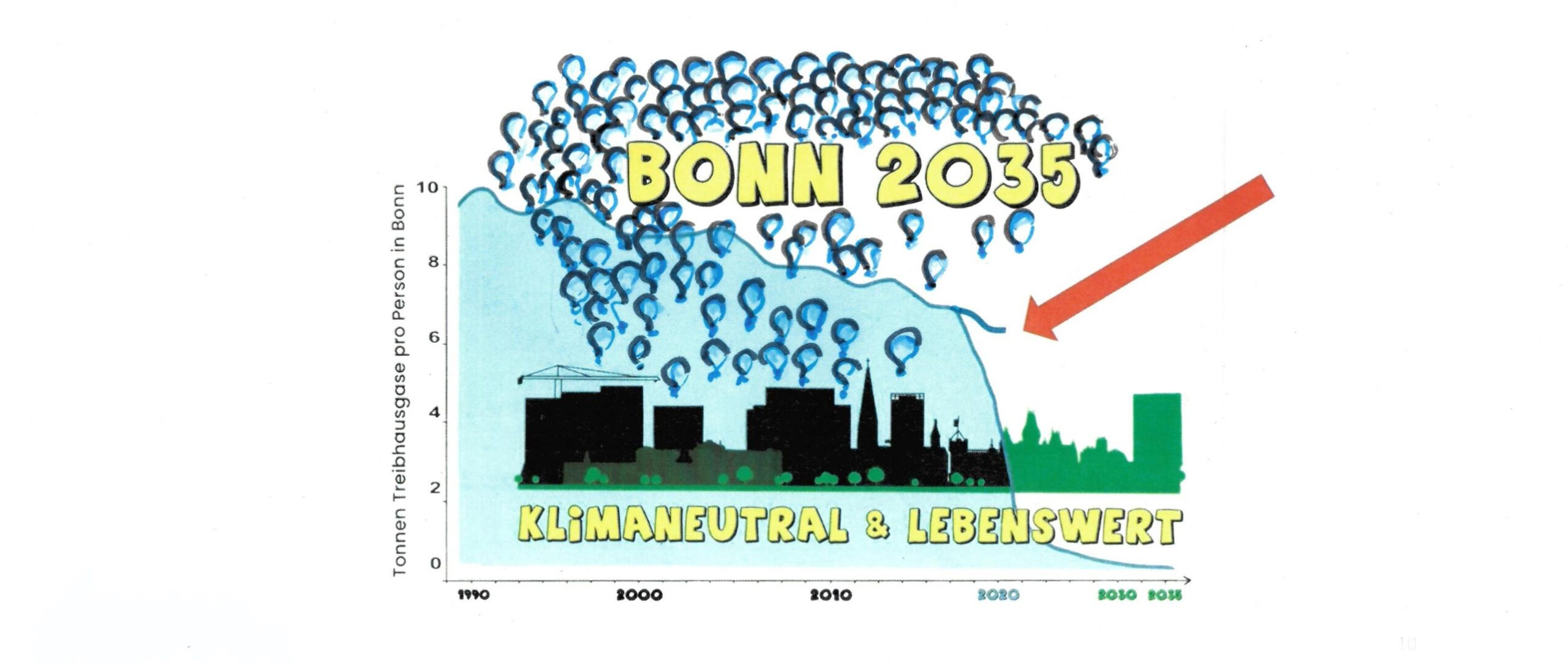 wir danken Ihnen, dass Sie am 7.11.2019 einvernehmlich und parteiübergreifend beschlossen haben, dass Bonn bis spätestens 2035 klimaneutral wird. Seitdem ist viel passiert. 2020 startete das größte Mitwirkungsverfahren der Stadt: Bonn4Future – Wir fürs Klima, Im Jahr 2022 wurde der Klimaplan erarbeitet.