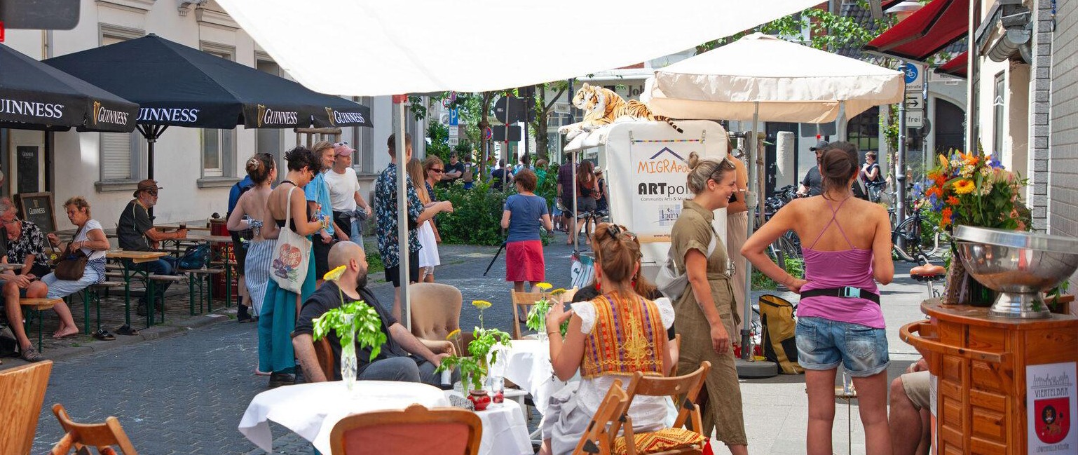 Du hast Lust, dein Quartier einmal ganz anders zu erleben und zusammen mit anderen eine Aktion in deiner Wohnstraße umzusetzen? Dann melde dich an zu einem der beiden Informations-Workshops für Vereine, Organisationen, Anwohnende und Interessierte, die die Stadt Bonn in Kooperation mit „ARTpolis – Community Arts ;amp; Music Lab ℅ BIM e.V.“ anbietet!